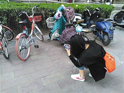 4月2日,海淀某小区,北京共享单车猎人海燕举报小区内“违?!鼻榭觥P戮┍钦?卢通 摄