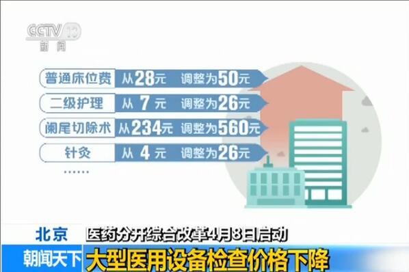 降低大型医用设备检查项目价格,比如头部CT从180元降到135元,核磁从850元降到400~600元。