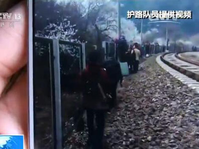 护路队员:一天得有100多人进铁轨。有的人听,有的人不听,我们只能劝阻,我们又没有执法权力,如果不听的话我们就上报派出所。