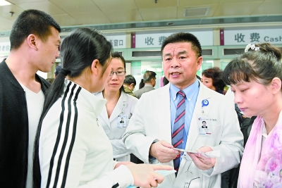 北京大学肿瘤医院院长季加孚耐心解答患者的咨询。记者 方非摄
