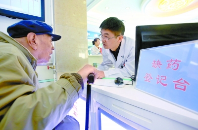 昨天,在西城区德胜社区卫生服务中心专门设置的缺药登记台前,社区医生正帮助一名老年患者进行缺药登记。 记者 方非摄