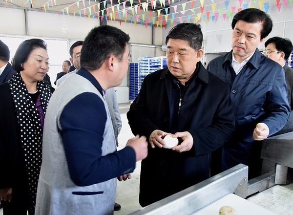 全哲洙一行先后深入台前县侯庙镇菇香小镇、大杨精准扶贫就业基地、绿源畜牧、电商产业园、城关镇尚庄、赵楼精准扶贫就业基地、打渔陈镇东仝精准扶贫就业基地、濮阳县汇源肉羊产业链项目、国途鞋业有限公司、玉峰塑料包装厂等“百企万户”产业扶贫工程示范点实地调研,详细了解企业生产经营、贫困人口就业安置、产业帮扶、村企共建等情况,并在侯庙镇碱场村、打渔陈镇东仝村召开座谈会。全哲洙称赞濮阳“百企万户”工程是“万企帮万村”行动的生动实践,精准扶贫就业基地建设是一种创新探索。他说,要坚持问题导向和结果导向,尊重和顺应市场经济规律,努力实现企业可持续发展和农民可持续增收两个“可持续”。