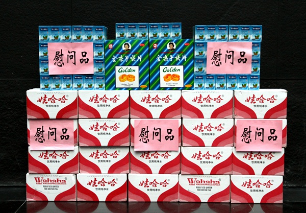 为表达对陈列馆的感谢之情,参加活动的农工党党员自费购买20箱矿泉水,农工党党员、哈尔滨海晖医药连锁有限公司总经理王伟提供了胖大海含片500盒和金嗓子喉宝200盒等保健药品,赠送给陈列馆的工作人员。
