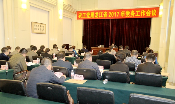 2017年4月8日,农工党黑龙江省委会在省社会主义学院一楼报告厅召开2017年全省党务工作会议。农工党黑龙江省委会驻会副主委刘长青出席会议并讲话,省委会秘书长孔令全主持会议?;嵋榈闹饕谌荩荷钊胙肮岢怪泄彩私炝腥峋瘢谎跋敖阶苁榧窍盗兄匾不熬?;学习贯彻十二届全国人大五次会议、全国政协十二届五次会议精神;贯彻落实农工党2017年全国党务工作会议精神,部署2017年全省重点工作;各市级组织与会领导和省直各基层组织负责人分组讨论并交流工作经验??换嵘?,农工党黑龙江省委会机关各部门负责人分别介绍了本部门2017年重点工作。