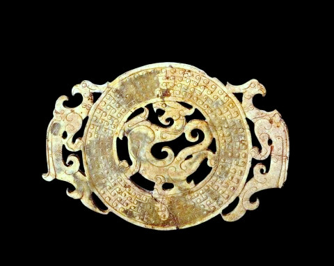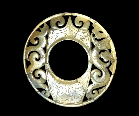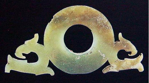 山西侯马还出土一种双凤合璧玉佩,双凤拱立玉璧,这也是战国时出现的新造型。有时也可以见到双龙拱璧玉佩,但像侯马的这件玉佩并不多见。