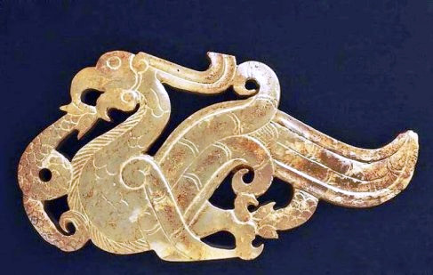 有意思的是,在战国时期,S形龙首凤尾玉佩又有新变化,龙首消失,变成两端都是凤首。河北易县燕下都就见到这样的双凤首玉佩,花式大S形,两端均为凤首,凤首大小同等。当然在燕下都同样也有S形双龙首玉佩出土,龙凤分体,又是一种意味。