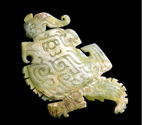 西周还有龙凤同体玉器,龙凤共一身躯,一端为龙首,另一端为凤首,一般称之为龙首凤尾。这种龙首凤尾形构图,尚不明含义如何,从龙凤合体分析,至少可以察觉出龙凤中出现的亲近感。龙凤融为一体,是周人的一种奇想,这奇想的背后,应当还有深层的含义。从互为表里,到亲密无间,再到合二为一,这样的变化动因很值得研究。
