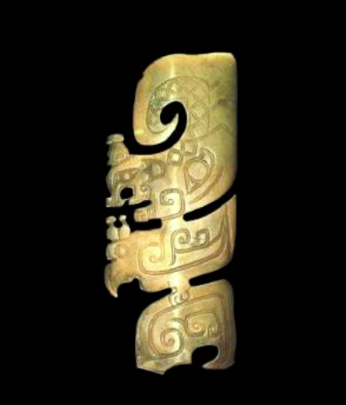 除了这种S形造型,也有玉璜类,同样制成龙首凤尾形。河南光山黄季佗父墓出土玉璜,既有双龙首形,也有龙首凤首同体形。