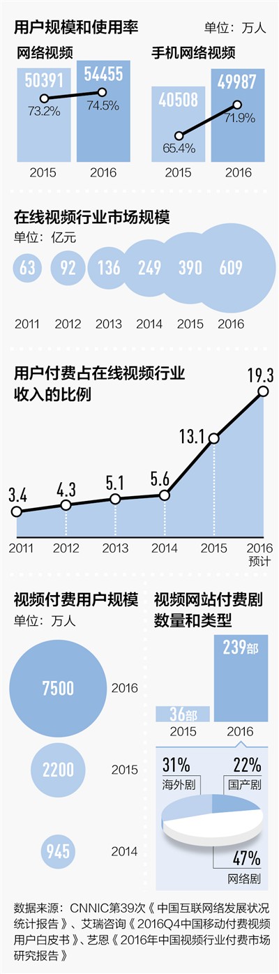 随着网络剧、网络综艺等日益火爆,目前,越来越多的视频网站把内容付费列入着力发展的盈利模式,与之相应,也有越来越多的用户愿意为内容付费。据统计,2016年我国网络视频有效付费用户规模已突破7500万。近年来,网络视频付费经历了怎样的历程?什么原因促使网络付费视频快速发展?未来网络视频发展又有何趋势?