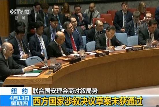 12日,联合国安理会就叙利亚局势展开辩论,并就英美法三国起草的叙利亚化学武器问题决议草案进行了表决。俄罗斯和玻利维亚投出了反对票。由于作为安理会常任理事国的俄罗斯拥有一票否决权,这份决议草案未获通过。中国当天投出了弃权票。