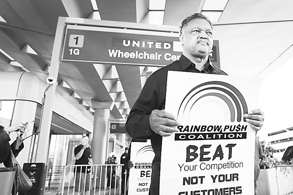 12日,芝加哥国际机场,美国民权人士抗议美联航。
