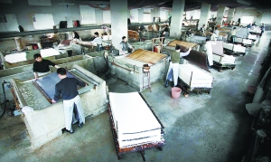 国家虽然给出了宣纸制造业的标准,但是在实际生产环节,如何执行这一标准一直是困扰政府和厂家的难题。我曾经在北京琉璃厂咨询过千年古宣宣纸厂北京直销店的卢经理,他就表示国家标准无法执行,宣纸的含檀皮量到底要以多少为最低,大多数生产企业不愿意面对这个问题。最低限度地使用檀皮,并在生产环节加入龙须草、滑石粉等非正规原料,这种现象屡见不鲜,而且这种介于宣纸和书画纸之间的纸同样是印着宣纸的名字出售的,价格与真正的宣纸相差无几。