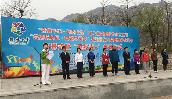 4月8日上午,北京市侨联在凤凰岭森林公园举办“亲情中华.侨韵北京”第八届首都新侨乡文化节、“共建核心区.同筑中国梦”海淀区第六届新侨乡文化节开幕式暨“健步走”活动。