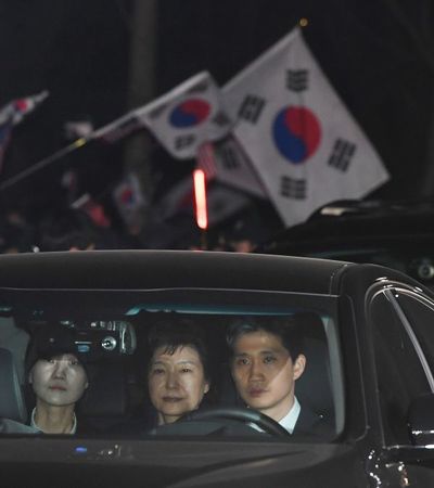 3月31日,韩国前总统朴槿惠(中)从首尔中央地方检察厅被移送至首尔看守所。