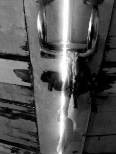 阎良监测站,通往楼顶的大门由两扇木门把守,锁已经起不到任何作用,两扇门是用一块破布绑着?;瘫?图
