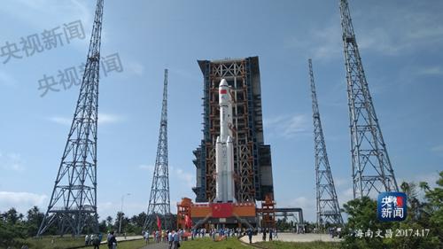 今天7时20分,承载着长征七号遥二运载火箭与天舟一号货运飞船组合体的活动发射平台驶出总装测试厂房,平稳行驶约2.5小时后,垂直转运至发射区。后续,将在发射区开展天舟一号货运飞船与长征七号遥二运载火箭功能检查和联合测试工作,完成最终状态确认后,火箭加注推进剂,计划4月20日至24日择机发射。