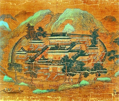 《辋川图》传为唐朝王维所作,现存有美国西雅图和日本圣福寺两个摹本。美国西雅图美术馆藏有《临王维辋川图》,传为郭忠恕所摹复本。