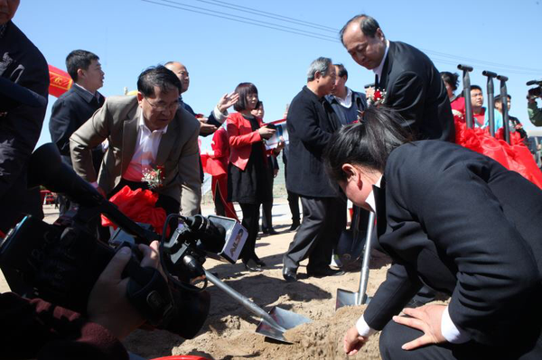 启动仪式结束,赵孝庆与现场领导、嘉宾,手持铁锹,铲土浇水,共同种下了代表长岭县产业结构改革的第一批油用牡丹苗。