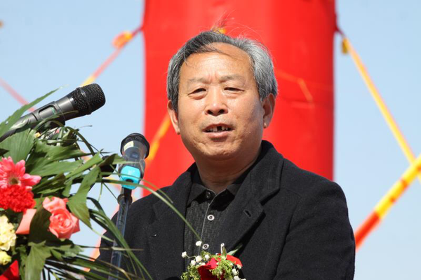 中国油用牡丹籽之父、国家林业局赵孝庆教孝庆在启动仪式上讲述牡丹的药用价值、经济价值和生态观赏价值。 张永利 摄