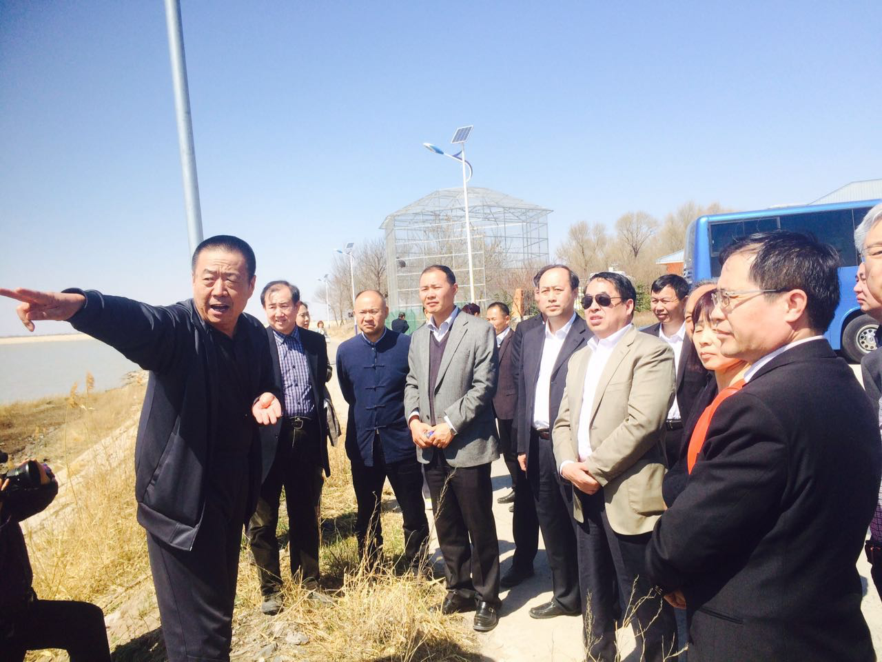万顷牡丹种植启动仪式结束后,有关领导到长岭县龙凤湖考察生态环境建设。 梓涵 摄