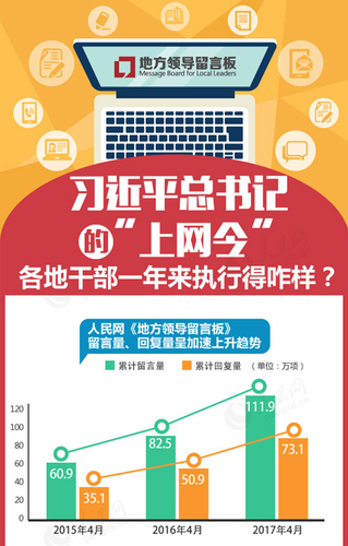 2016年4月19日网络安全和信息化工作座谈会后,以总书记重要讲话精神为感召,更多领导干部拿起鼠标,投身到干群网上互动的行列中。一年来,有超过300位地方领导干部在《地方领导留言板》上开始公开回应网民诉求,同比增长274%。