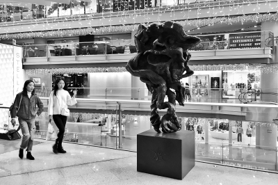 图为某购物中心里的雕塑作品。 邓伟/摄