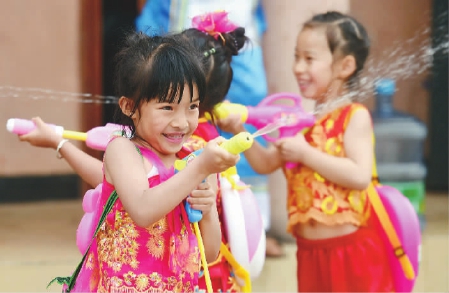 云南景谷傣族儿童欢度泼水节 新华社发 蔺以光 摄