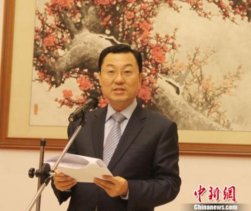 4月20日晚,中国驻印尼大使馆举行招待会,欢迎“中印尼青年互访交流团”成员到印尼开展游学交流活动。图为中国驻印尼大使谢锋致辞。林永传摄