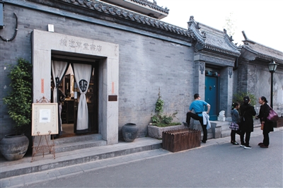 昨日下午近4时,南锣鼓巷帽儿胡同4号朴道草堂书店前,四五名游客驻足拍照。