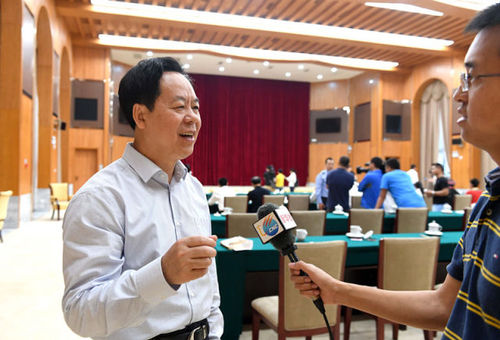 4月20日,崇左市委书记刘有明讲述向习近平总书记汇报时的情景。新华社记者 周华 摄