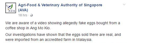 【环球时报-环球网报道 记者 姚丽娟】“每个人都注意了,中国制造的假鸡蛋来了新加坡!我在宏茂桥的咖啡店吃到假鸡蛋,一定要留心,并提醒你关心的人!”近几日,一则关于“中国假鸡蛋”的帖子在新加坡社交媒体上火了。也许是帖子的作者以视频为证,现身说法给出的“忠告”令许多新国人有些惊慌,帖子21日发出后,短短3天内就被5000多人转发,超过26万人观看了视频。但事实究竟如何呢?
