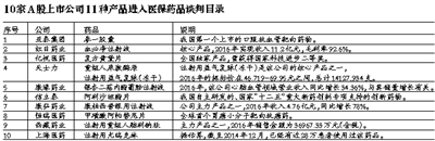 10家上市公司产品入围谈判目录