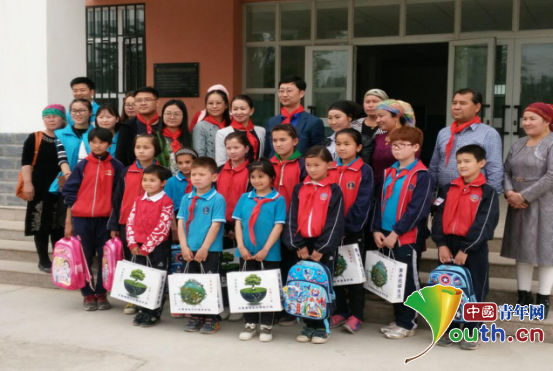 吐鲁番市团委干部与结对的学生合影。团吐鲁番市委供图