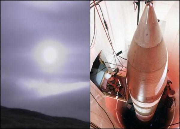 导弹在浓雾中发射升空(左图);右图为民兵3型导弹