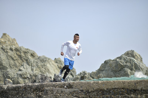 图为奔跑中的陈盆滨。(陈盆滨供图)