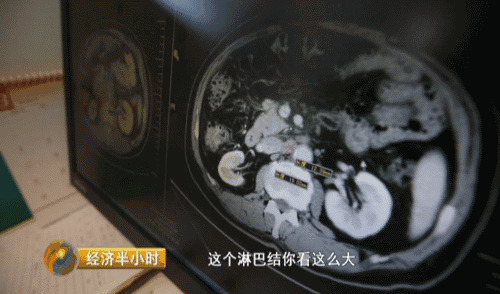 军事医学科学院附属医院307医院消化肿瘤内科主任徐建明:这个淋巴结你看这么大,这个最短径是1.2公分,最长径是1.9公分,原来的最短径是3.0公分,最长径是3.9公分,这个是一个比较好的效果的一个病人。