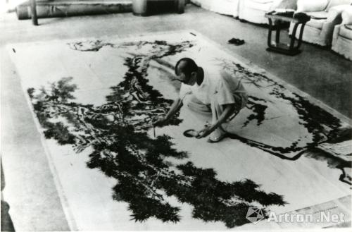 1964年潘天寿在杭州华侨饭店作大画
