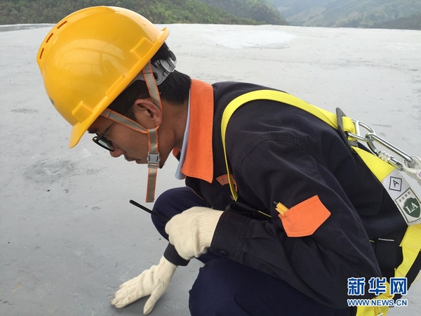 赵云龙的日常工作之一,是在大桥拱圈外部仔细检查是否有掉漆、裂纹、破损等病害并及时记录。新华网 聂晨静 摄
