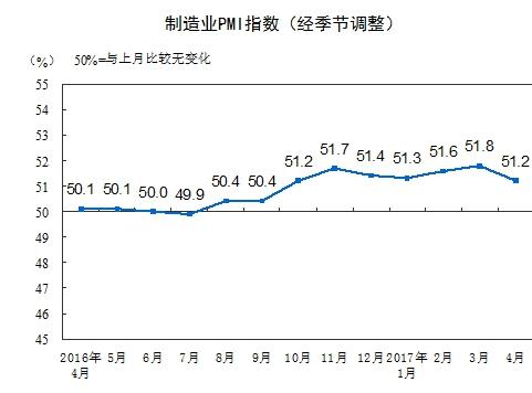 4月中国制造业PMI为51.2% 比上月回落0.6%