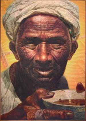 上世纪八十年代上大学的时候,曾看过罗中立的成名作《父亲》,其震撼至今留在心间:黝黑的满布沟壑的脸,透着希冀深陷的眼窝,干裂的微张的口唇,还有位于画面最前方捧着粗瓷碗的那张粗糙、裹着厚厚的老茧的手……典型的中国农民的脸和劳动人民的手啊!