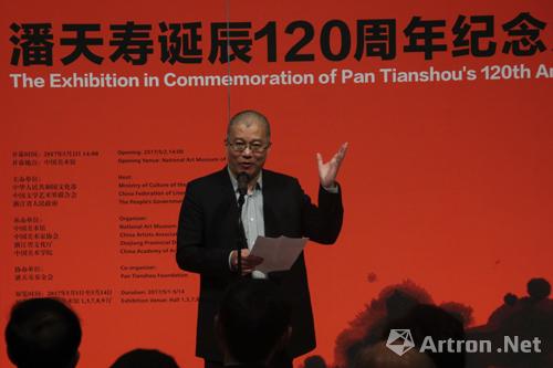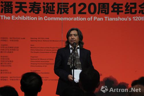 中国美术学院院长许江在谈到此次展览的举办时表示,此次展览主要从第三个方面来梳理潘天寿先生:首先是作为艺术家,潘天寿先生直面现代之挑战,倡导“至大、至刚、至中、至正之气”,在千年中国画史中独树一帜。其次是作为教育家,潘天寿先生是中国画和书法现代教育的奠基者,五十年的教育生涯,建构起中国传统艺术在现代艺术教育体系中得以教习与传承的人文系统。最后是作为画学家,中国画背后理论思想的体系就是画学,近代画学在潘天寿先生这里得到了发扬,他是最后一代集诗书画于一身的大师,提出了中西艺术“拉开距离”、“双峰挺立”,奠定了现代中国艺术自我更新的意识基础。