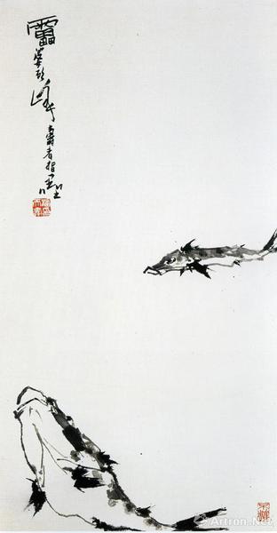 潘天寿 鱼乐图轴 指墨 108×57.5cm 1962年 潘天寿纪念馆藏