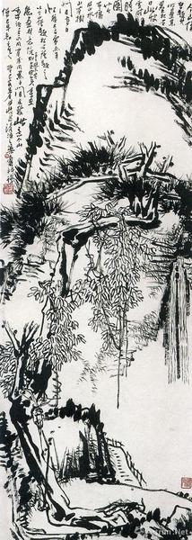 潘天寿 焦墨山水图轴 中国画 183.3×66cm 1953
