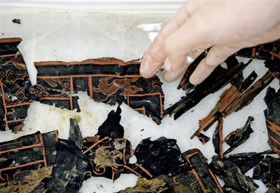 走进成都文物考古研究所文物保护与修复中心,准备“手术”的文物让人眼花缭乱。其中,出土漆器最具巴蜀特色,修复起来也费时费力。出土漆木器修复师刘晓彬从装满蒸馏水的塑料盒中,取出树皮一样的东西?!罢庑┦瞧崞?胎已经脱落了?!绷跸蛐稳菡庑┪奈锔鄱垢谎嗳?要将这些剥落的皮粘合起来,难度远远超过拼图游戏。