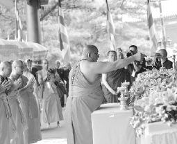 本次活动首次邀请东南亚国家驻华使节及社会名流人士出席。浴佛仪式上,大家舀起象征离尘除垢、净化心灵的香汤净水,从太子佛像头顶淋下。现场信众排着长长的队伍,口诵佛号,心怀虔敬,以香花净水浴佛,祈愿吉祥平安。