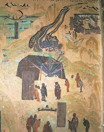 初唐敦煌323窟康僧会建业传法,图为祈请舍利的情形。资料图片