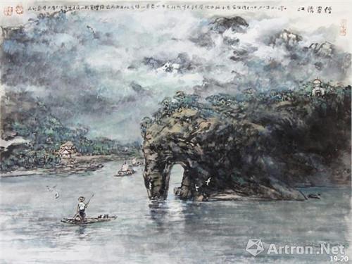 烟罩漓江 作者:张善平 创作年代:2014 规格:66×87.5cm 品类:中国画