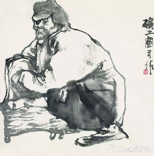 周思聪 《矿工图》习作34cm×34cm 纸本水墨 1980年 家属藏