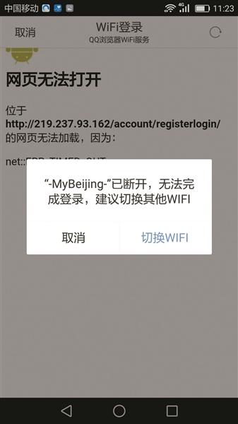 3. 除了未收到验证码,在搜索-MyBeijing-网络后,跳转页面也出现失败