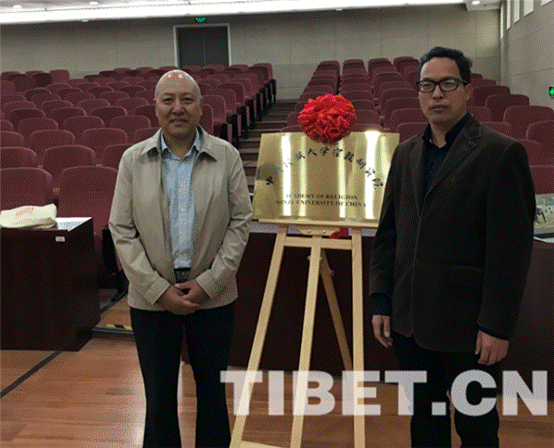 图为中央民大宗教研究院客座教授尕藏加和宗教研究院藏传佛教研究中心主任周拉教授合影留念